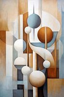 Abstracte collage in zachte aardetinten en pastelkleuren.