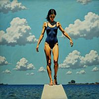 Het kunstwerk Balancing on the Edge vat de delicate dans tussen anticipatie en moed samen. Een eenzame vrouw, op de rand van een witte duikplank, eist de aandacht van de kijker op. Haar houding straalt stille kracht uit, haar armen zijn lichtjes uitgestrekt en haar tenen grijpen de plank, wat de spanning tussen aarzeling en…