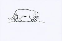 Een eenvoudige minimalistische lijntekening in zwarte inkt toont een kat op rooftocht, die zijn sierlijke bewegingen met minimale details vastlegt. De kat balanceert op een lijn en kijkt aandachtig naar beneden. De zwarte lijnen contrasteren met een effen witte achtergrond en benadrukken de slanke vorm van de kat.