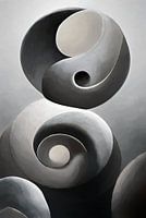 Abstract schilderij in beige en grijs tinten met als thema balans,zen,yin yang.