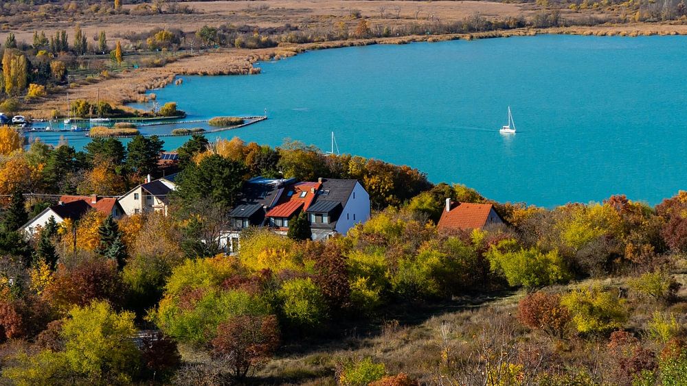 Het Balatonmeer gezien vanaf de heuvel van schiereiland Tihany in Hongarije.