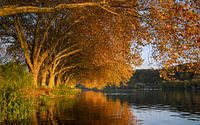 Platanenlaan aan het Baldeney-meer in herfstkleuren, Essen, Noordrijn-Westfalen, Duitsland