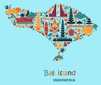 Deze illustratie vangt Bali in vrolijke, strakke vectoren die samen het eiland vormen.
