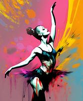 Het kunstwerk lijkt te pulseren met de energie van de dans, terwijl de graffiti-elementen de verfijning van het ballet omarmen en tegelijkertijd een rebelse, straatkunst-vibe uitstralen. Het spel van schaduwen en kleuren geeft diepte aan de beweging, en elk spuitbusaccent draagt bij aan het verhaal van zowel gratie als kracht. Dit kunstwerk vormt een unieke samensmelting van twee werelden, waarbij de dansende ballerina een symbool van zowel verfijning als vrije expressie wordt.