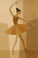 Een abstracte ballerina, modern en minimalistisch uitgevoerd in warme aardetinten. Zachte schakeringen van beige en bruin vloeien in elkaar over en vangen de essentie van beweging en balans, zonder details te forceren. De vormen zijn subtiel en krachtig tegelijk: een ingetogen silhouet dat elegantie suggereert in plaats van…