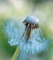 Ik kwam op de fiets langs een groot veld uitgebloeide paardenbloemen en besloot de volgende ochtend terug te gaan om foto's te maken. Net voor de motormaaier van de gemeente te gras maaide, kon ik nog een paar prachtige foto's maken. De zaaddoosjes van de pluisjes zijn haarscherp en de nog niet weggewaaide zaadpluisjes vormen als het ware een feestjurk. Wat heeft deze ondergewaardeerde bloem een prachtige structuur.