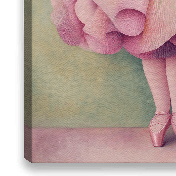 Fantasie portret illustratie in zachte pastel tinten met een verlegen ballet danseresje in een roze bloem tutu in de stijl van de Colombiaans schilder en beeldhouwer Fernando Botero