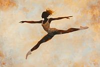 Elegantie in beweging: Een krachtig silhouet belichaamt de sprong in vrijheid, omringd door warme, zachte kleurtinten die een harmonieuze sfeer creëren. Dit kunstwerk brengt levendigheid en inspiratie in elke woon- of slaapkamer, perfect voor iedereen die een passie voor dans en expressie waardeert.