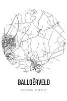 Zwart-witte landkaart, stratenplan of plattegrond van Balloërveld. Balloërveld is gelegen in de gemeente Aa en Hunze, provincie Drenthe. Op de stadskaart zijn alle openbare wegen in Balloërveld opgenomen. Verder is de kaart voorzien van de coördinaten van het centrum van Balloërveld.