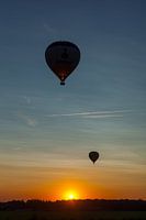 Foto genomen vanuit een luchtballon met luchtballonnen in beeld tegen een blauwe lucht.