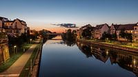 Late night view over the river of Bamberg, Germany, July 2017
