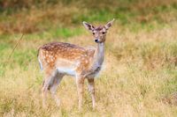 Jong hertje in het veld in national park de Hoge Veluwe in Nederland