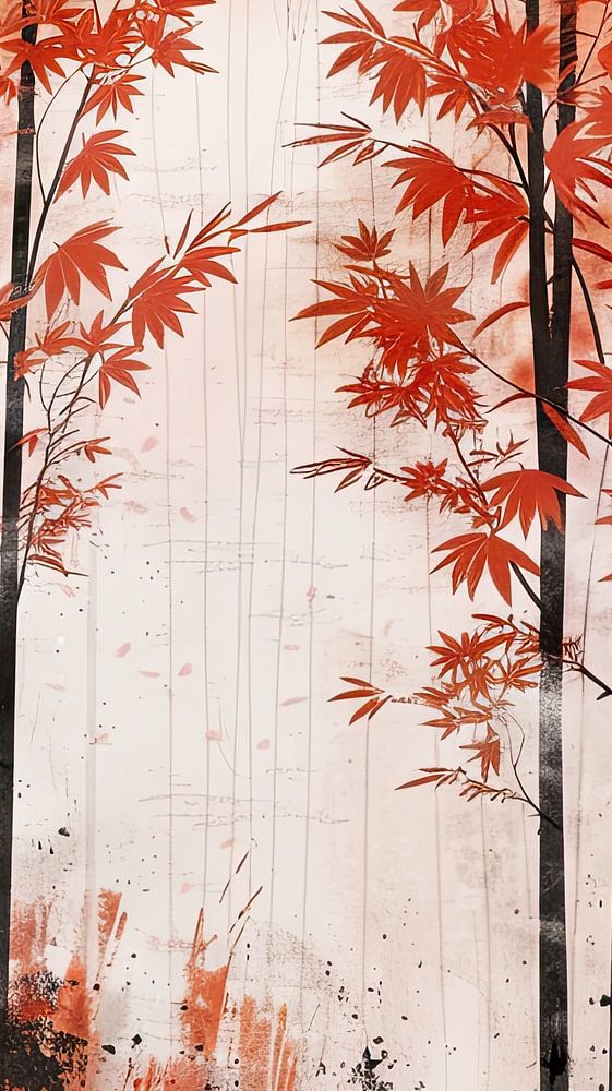 Een bamboebos met slanke stammen en bladeren die zich in verschillende richtingen uitstrekken. De oranje rode kleuren variëren van diepe tot lichtere tonen, waardoor er een dynamisch contrast ontstaat. De achtergrond vervaagt geleidelijk, wat een gevoel van diepte en mysterie toevoegt. De penseelstreken en textuur geven het beeld een artistieke en bijna abstracte uitstraling. De compositie straalt balans en beweging uit, waardoor het een perfect kunstwerk is voor een modern interieur.De print kan worden afgedrukt in verschillende formaten en kan worden afgedrukt op diverse materialen.