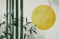 De stralende gele kleur van de zon en de zachtjes wiegende bamboestengels creëren een harmonieuze compositie die rust en nabijheid tot de natuur uitstraalt. De minimalistische lijnen nodigen uit om te dromen en creëren een rustgevende sfeer. Ideaal voor de woonkamer of leeshoek om ontspanning en evenwicht te bevorderen.