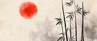 Een vleugje elegantie uit het Verre Oosten ontvouwt zich met zachte bamboestengels voor een felrode bol van zonlicht. De harmonieuze combinatie van strakke lijnen en zachte kleuren creëert een rustgevende sfeer in elke kamer. Perfect voor de slaapkamer, creëert het een oase van rust en inspiratie die uitnodigt om te dromen.