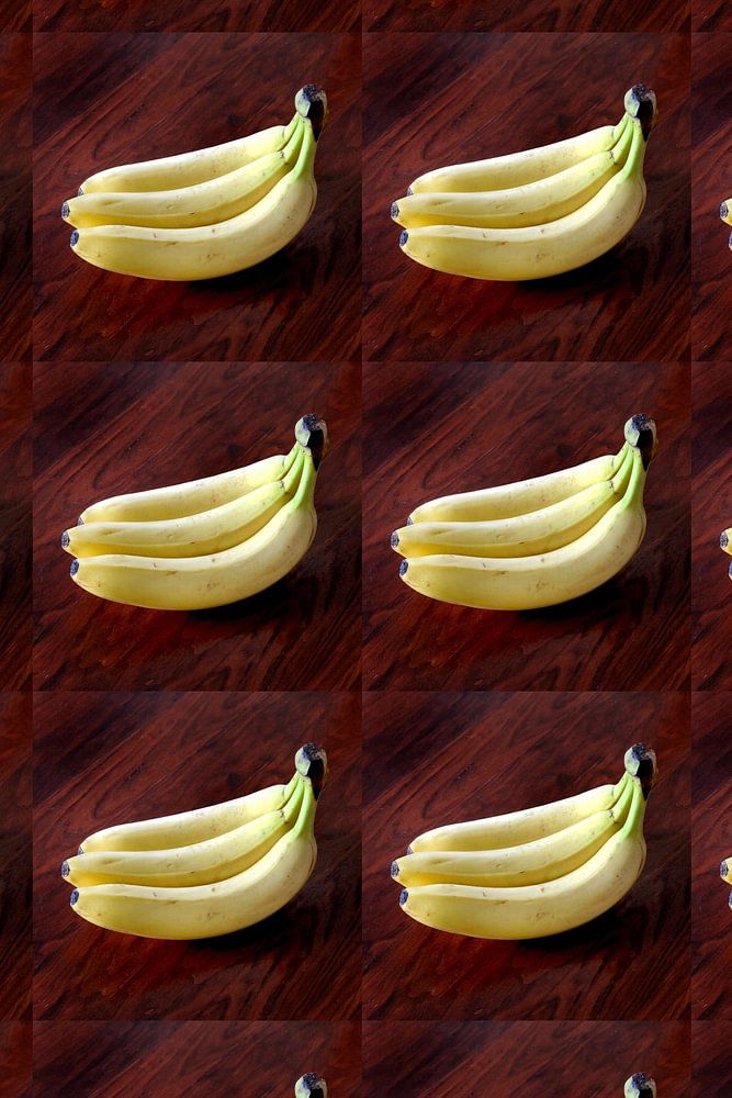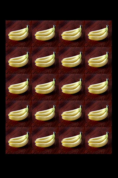 Banaan/Banana. Uit een serie van 25 mozaïeken met verschillende foto's. De werken zijn analoog gemaakt zonder kunstmatige intelligentie (AI).