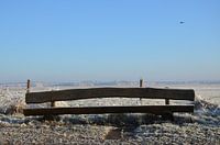 Bank in en befroren landscap, Oldenburg, Deutschland
