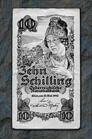 Voorzijde van een ongeldig tien shilling bankbiljet uit 1945 uit Oostenrijk