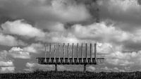 Een houten bankje op een reepje gras met een vette Hollandse lucht er achter. Monochroom. Desgewenst in kleur verkrijgbaar (neem daarover contact op met de fotograaf svp). Engels titel: Best Seat In Tha House