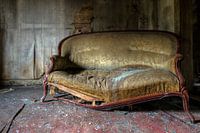Sommige verlaten gebouwen vertellen door hun interieur al een bijzonder verhaal. Dit bankstel is versleten in vele opzichten, maar is rijk aan geschiedenis.