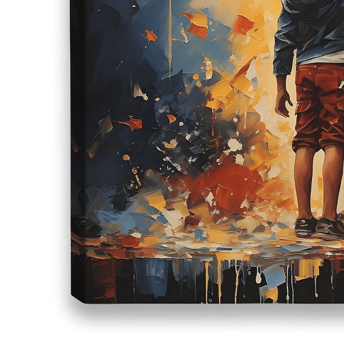 "Banksy meets Pollock art" is een intrigerende samensmelting van twee meesterlijke kunststijlen. Het resultaat is een speels en dynamisch kunstwerk, waarin de kenmerkende elementen van Banksy's straatkunst samensmelten met de expressieve verfdruppels en abstracte chaos van Pollock's action painting. De combinatie van politieke boodschappen, sociale kritiek en spontane verfexplosies zorgt voor een unieke en provocerende kunstervaring die zowel het intellect als de emoties prikkelt.
