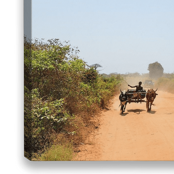 Prachtige opname van een kar met Zeboe's op de Allée des baobabs (Avenue of the Baobabs) in Madagaskar. Deze apenbroodbomen zien er geweldig uit en zijn een belangrijke toeristische attractie in het landschap.