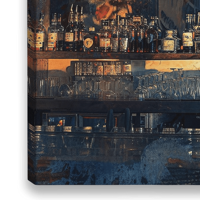 Creëer een sfeer van tijdloze elegantie met deze ingetogen afbeelding van een bar. Perfect voor elke kamer in huis die een vleugje verfijning nodig heeft.