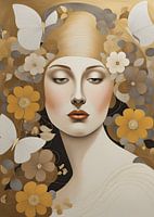 Dit opvallende kunstwerk, ontworpen als eyecatcher voor je huis, toont een elegant portret van een vrouw verweven met boeiende geometrische vormen en kleurrijke bloemen. Haar gelaatstrekken worden benadrukt door de strakke lijnen en vormen om haar heen, terwijl de bloemen een zachte en organische touch toevoegen aan het geheel. De…