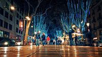 Barcelona bei Nacht, eine Impression von der berühmten Promenade La Rambla.