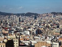 Een stadsgezicht van het mooie Barcelona. We kijken naar de wijk ‘El Poble Sec’