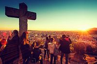 Ein Sonnenuntergang in Barcelona, aufgenommen vom Turó de les Tres Creus (Kalvarienberg) im Park Güell.