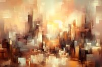 Verrijk je leefruimte met de levendige spirit van Barcelona door middel van een betoverend abstracte werk. Het abstracte ontwerp weerspiegelt de diverse architectuur, de zonnige sfeer en het dynamische straatleven. In warme bruin- en goudtinten komt de unieke charme van Barcelona tot leven, waardoor je een visuele reis door de straten en pleinen van deze prachtige stad ervaart. Hang dit twerk op en laat je omringen door de tijdloze allure van Barcelona, waar de artistieke expressie van het schilderij je verbindt met de essentie van deze bruisende metropool.