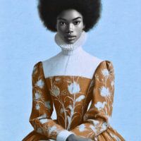 Een met behulp van AI (Artificial Intelligence) vervaardigd portret van een vrouw in kledij uit de Gouden Eeuw.