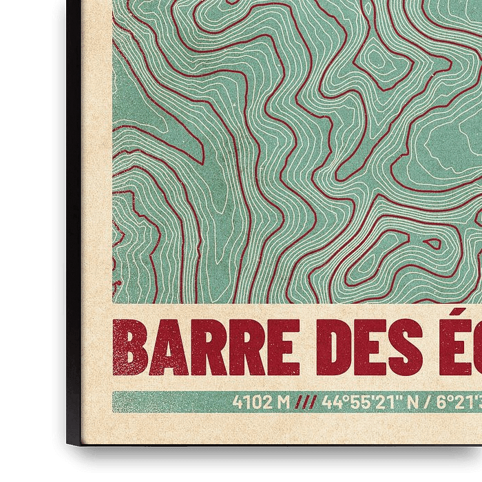 De Barre des Écrins in de Alpen van Frankrijk als topografische kaart. Retrostijlkaart met hoogtelijnen. Stijlvolle print voor wandelaars, bergbeklimmers en buitensporters - ook als cadeau-idee!