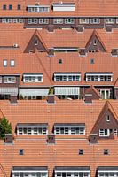Huizen in De Barrier in Eindhoven. Deze oudere huizen zijn na de complete renovatie gefotografeerd vanaf het voormalig Philips Nederland Hoofdkantoor. De daken geven een mooie symmetrie