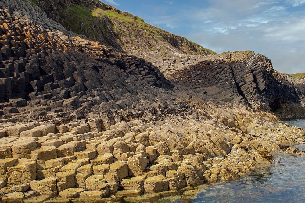 Een onbewoond eiland met symmetrisch gevormde basalt zuilen.