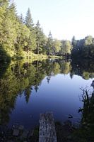 Basaltmeer in de Rhön met weerspiegeling