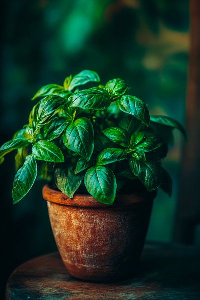 Deze levendige, groene basilicum past perfect bij natuurlijke aardetinten en geeft elke kamer een frisse uitstraling. De glanzende bladeren en de rustieke kleipot-look brengen een gevoel van natuur in huis. Ideaal voor de keuken of eetkamer, waar de geur en kleuren je uitnodigen om te koken en te genieten.