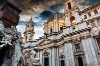 Kerk van Sant' Agnese in Agone bij schemering, op het Piazza Navona in Rome, Lazio, Italië
