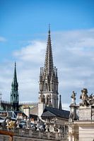 Nancy France Spire of Basilica of Saint Epvre of Nancy seen from Place Stanislas Basilique Saint-Epvre. Church, eglise, spire, blue, skies,