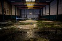 Een oud basketbalveld op een verlaten vliegtuig airport in Belgie.