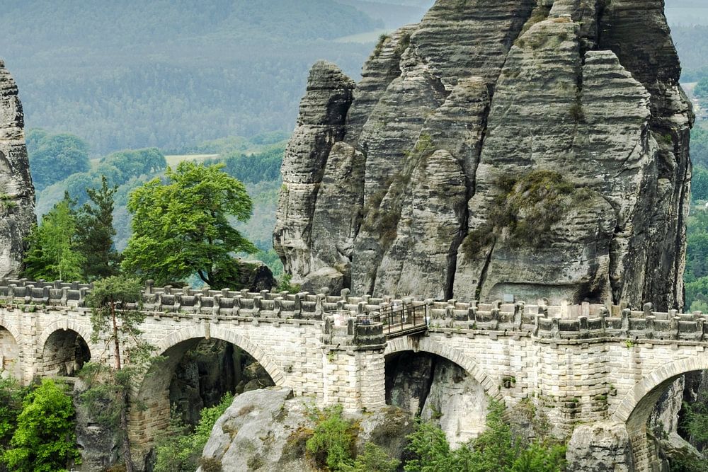 De Bastei is waarschijnlijk het bekendste hoogtepunt van de Sächsische Schweiz. Natuurlijk mocht deze kalkstenen brug niet ontbreken tijdens onze reis naar de Sächsische Schweiz. Al vroeg in de ochtend zijn we vertrokken om de drukte voor te zijn. Helaas was het niet echt een mooie ochtend maar de dreigende wolkenlucht geeft deze foto wel een geheel eigen sfeer. Door een hele lange sluitertijd te gebruiken is het gelukt om de brug te fotograferen zonder mensen erop.