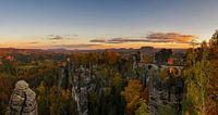 Zonsondergang bij de Bastei-rots in het Elbezandsteengebergte