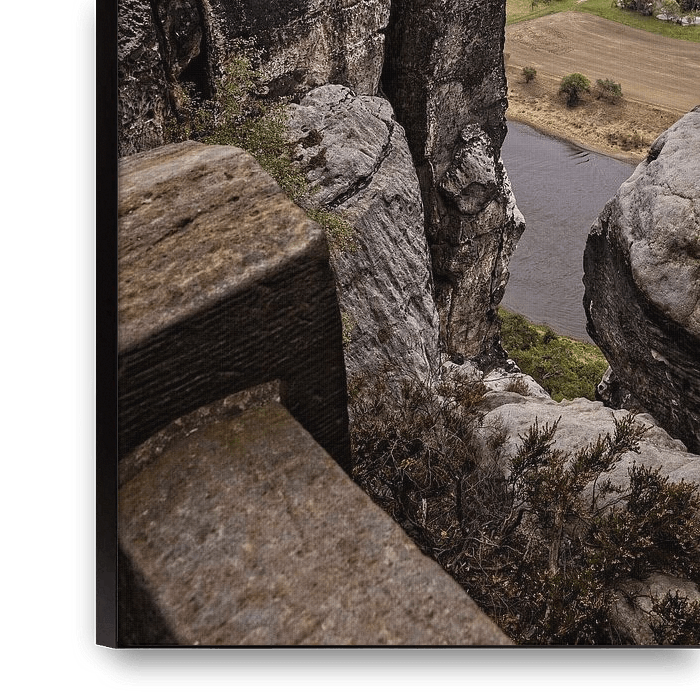 Smal kijkgat op de rivier de Elbe in het Bastei gebergte in de Sächsiche Schweiz.