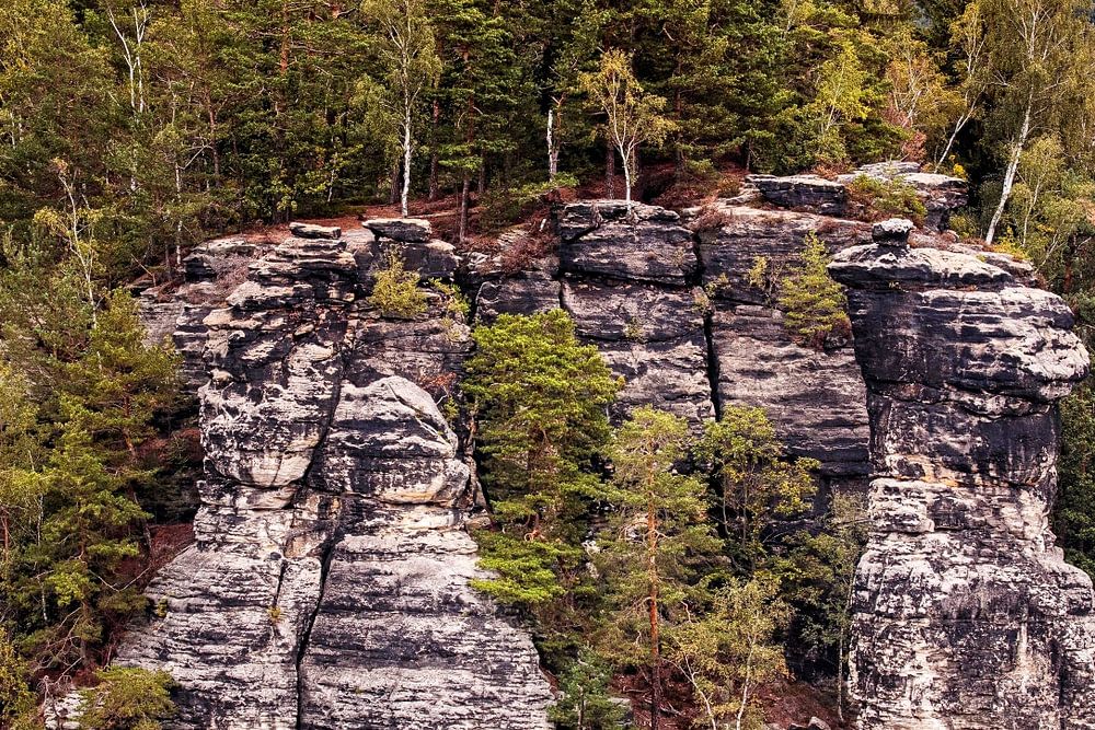 Zandsteengebergte in de Sächsische Schweiz bij Dresden (Duitse deelstaat Sachsen).