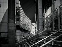 Ingang met trappen van van het moderne opera Bastille opera gebouw in het centrum van Parijs.