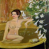 Het schilderij is ontleend aan een foto in een advertentie van een badkamerspecialist.