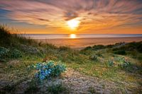 een distel in de duinen van Baubigny in Normandë tijdens zonsondergang.