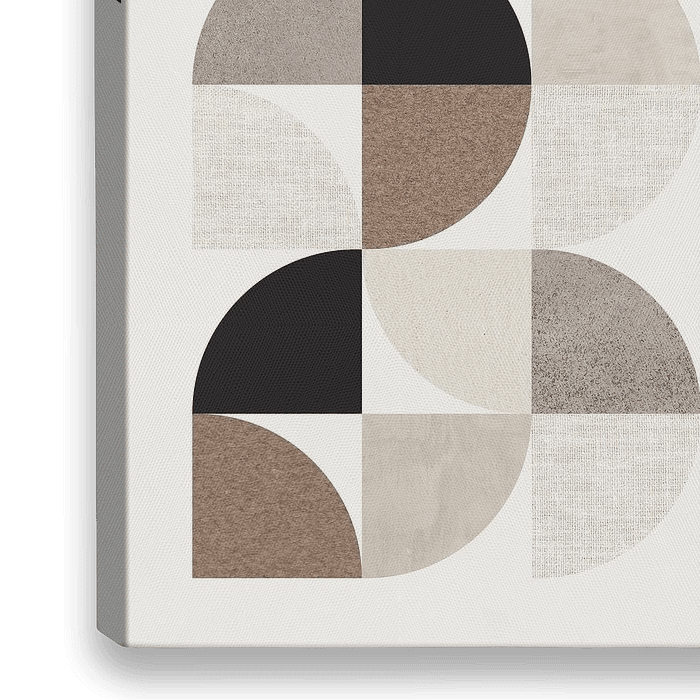 Een hedendaags kunstwerk dat de Bauhaus-stijl omarmt: diverse abstracte vormen gepresenteerd in verfijnde aardetinten en beige. Het beeld straalt een tijdloze elegantie uit. Een visueel statement dat de aandacht trekt met zijn harmonieuze, gestructureerde eenvoud.