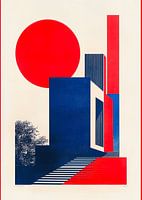 Met zijn eenvoudige vormen en krachtige kleuren brengt deze Bauhaus-poster een tijdloze en elegante esthetiek in elke kamer.